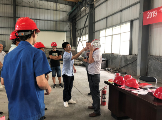 為大力弘揚“防風險、除隱患、遏事故”的思想,推進全國第18個“安全生產月”活動深入開展,確保火災事故發生時采取有效措施進行疏散及滅火,保障人員生命和財產的安全。公司質安部深入公司下屬企業龍巖市天潤龍城新型建材有限公司開展消防安全宣傳活動。質安部人員向一線工人現場講解對滅火器的使用步驟,講解了火災時正確使用過濾式消防自救呼吸器,展示滅火器材的使用方法及撲火過程中的注意事項以及在遇到火情時的一些應急方法,觀摩人員也進行了現場體驗,進一步提高了對基本滅火、逃生自救的能力。