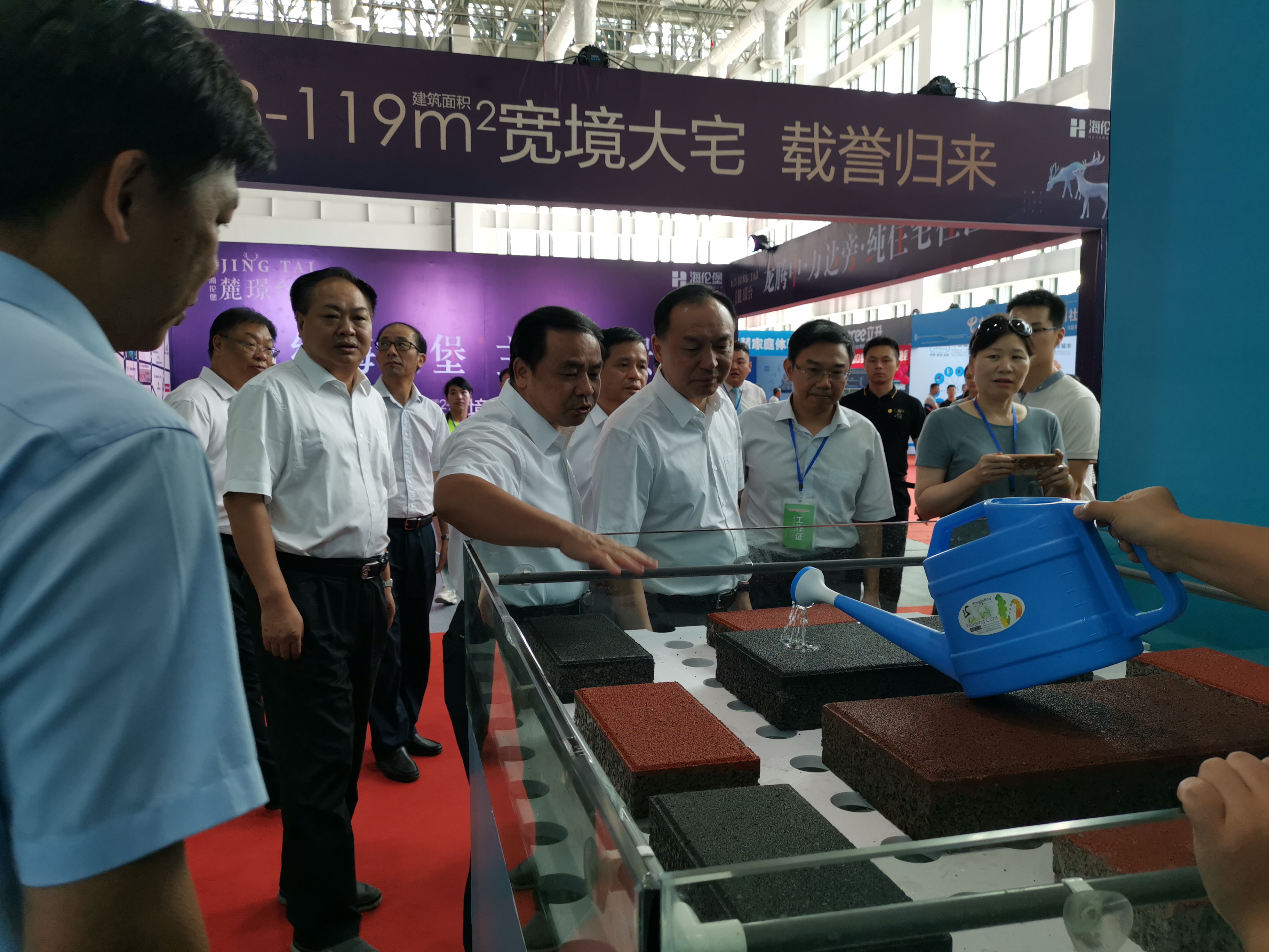 8月16日—18日,龍巖天潤龍城新型建材有限公司參加龍巖市建筑產(chǎn)業(yè)發(fā)展大會建筑新型材料展,展會上公司發(fā)放了公司產(chǎn)品宣傳冊,播放公司產(chǎn)品宣傳片,擺放公司產(chǎn)品樣品并在現(xiàn)場進行透水效果演示,市委許維澤書記一行在巡視展館中饒有興致地觀看聽取了公司產(chǎn)品性能情況介紹,對透水建材產(chǎn)品贊譽有加