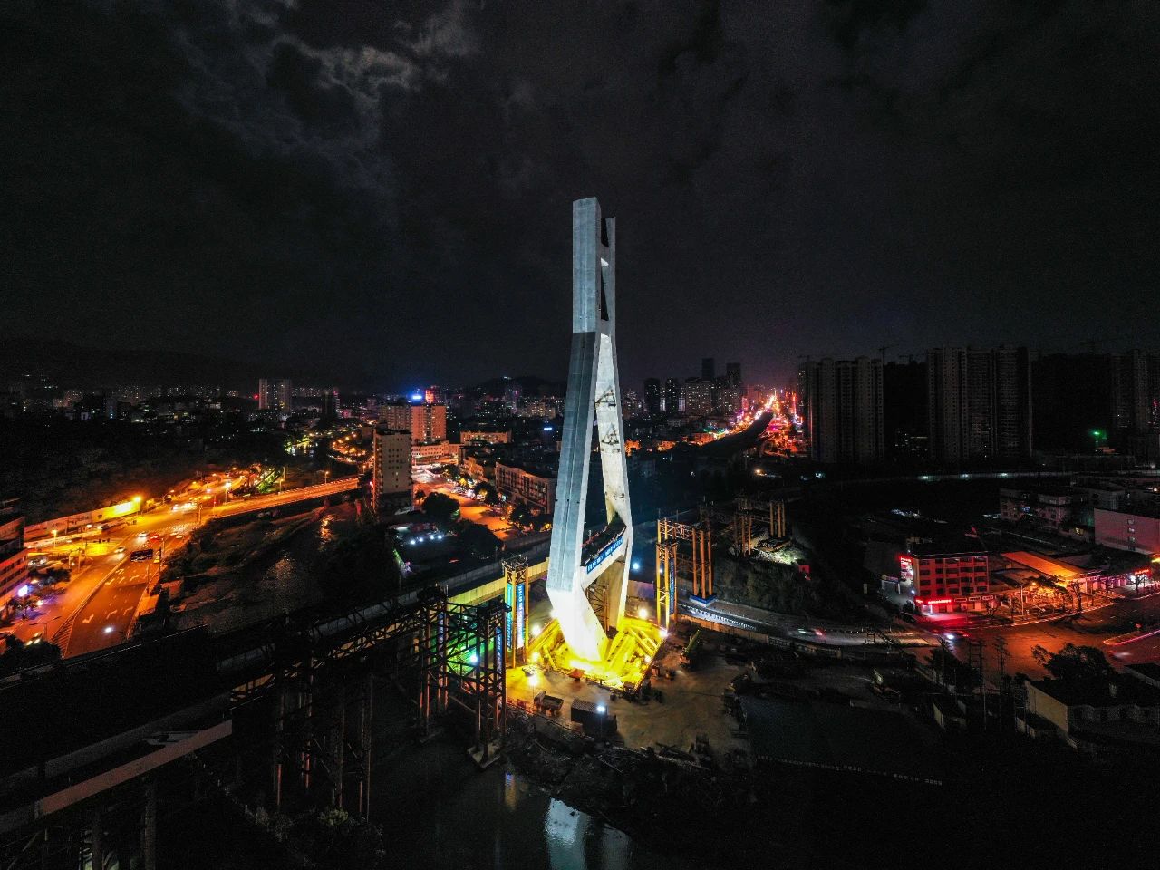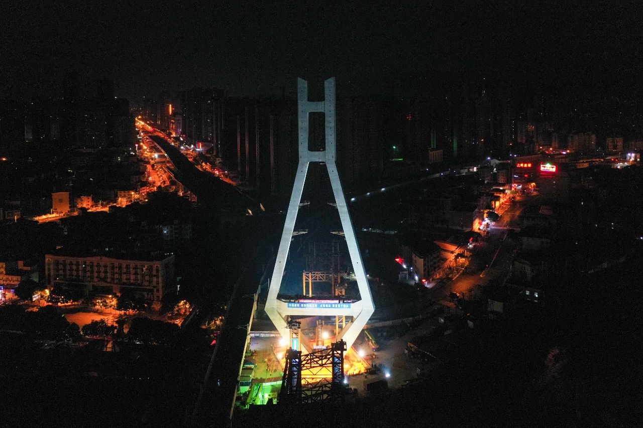 龍巖大橋主塔今日凌晨完成第一次轉(zhuǎn)體